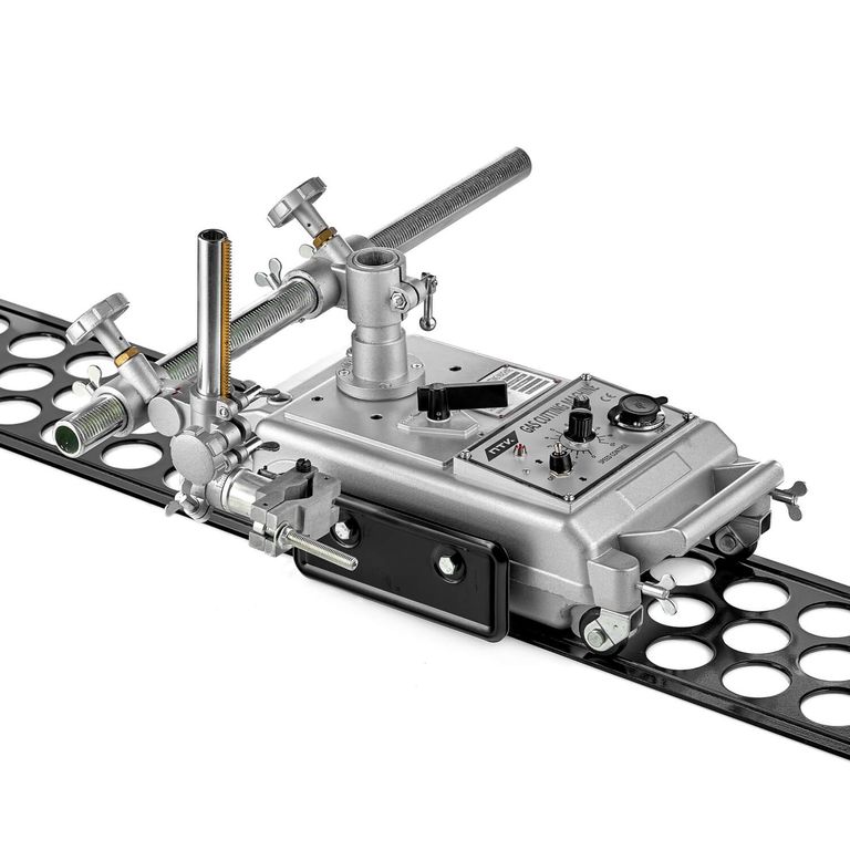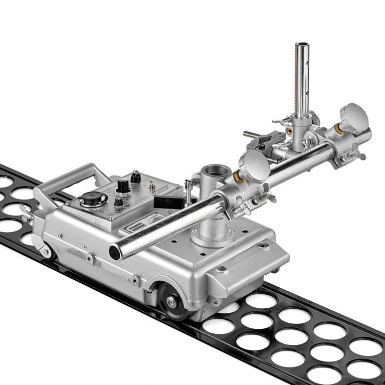 Машина оснащена электрическим приводом, скорость реза 50—5000 мм/мин. Для удобного и точного перемещения машины по листу в комплект входит направляющий рельс.
