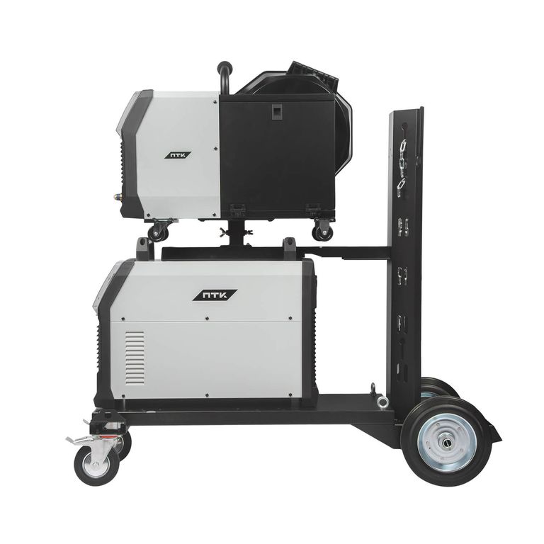 Аппарат поставляется в комплекте с тележкой для перемещения аппарата, подающего механизма и баллона с защитным газом. Тележка обладает надежной усиленной конструкцией, где толщина металла около 3 мм.