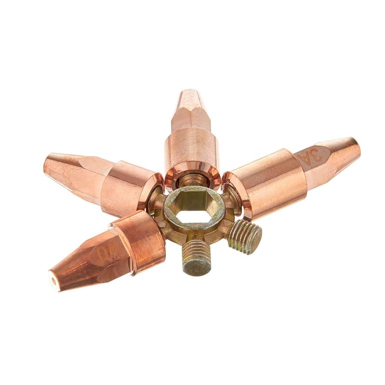 - Латунный сварочный наконечник, медные мундштуки для сварки металлов разных толщин и ключ-звездочка входят в комплектацию.