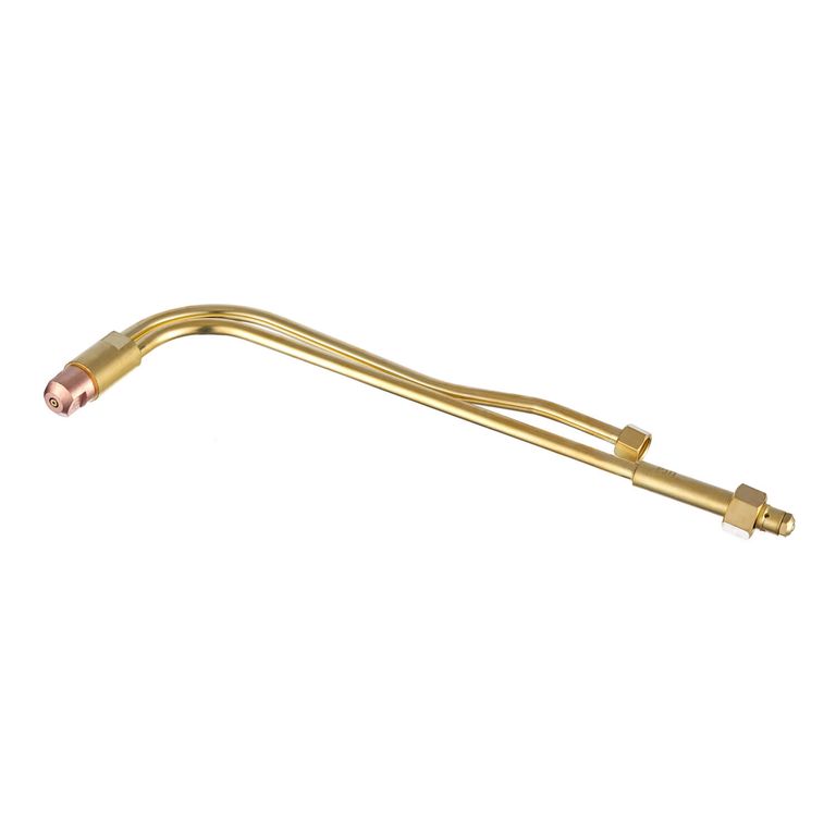 Наконечник для резки состоит из двух латунных трубок размером ⌀6х1 и ⌀8х1. Трубка ⌀6х1 крепится к вентилю кислорода режущего при помощи накидной гайки М12х1,25. Трубка ⌀8х1 крепится к вентилю горючего газа накидной гайкой М16х1,5. Гайки укомплектованы резиновым уплотнительным кольцом 009-012-19 для лучшей герметичности конструкции резака.